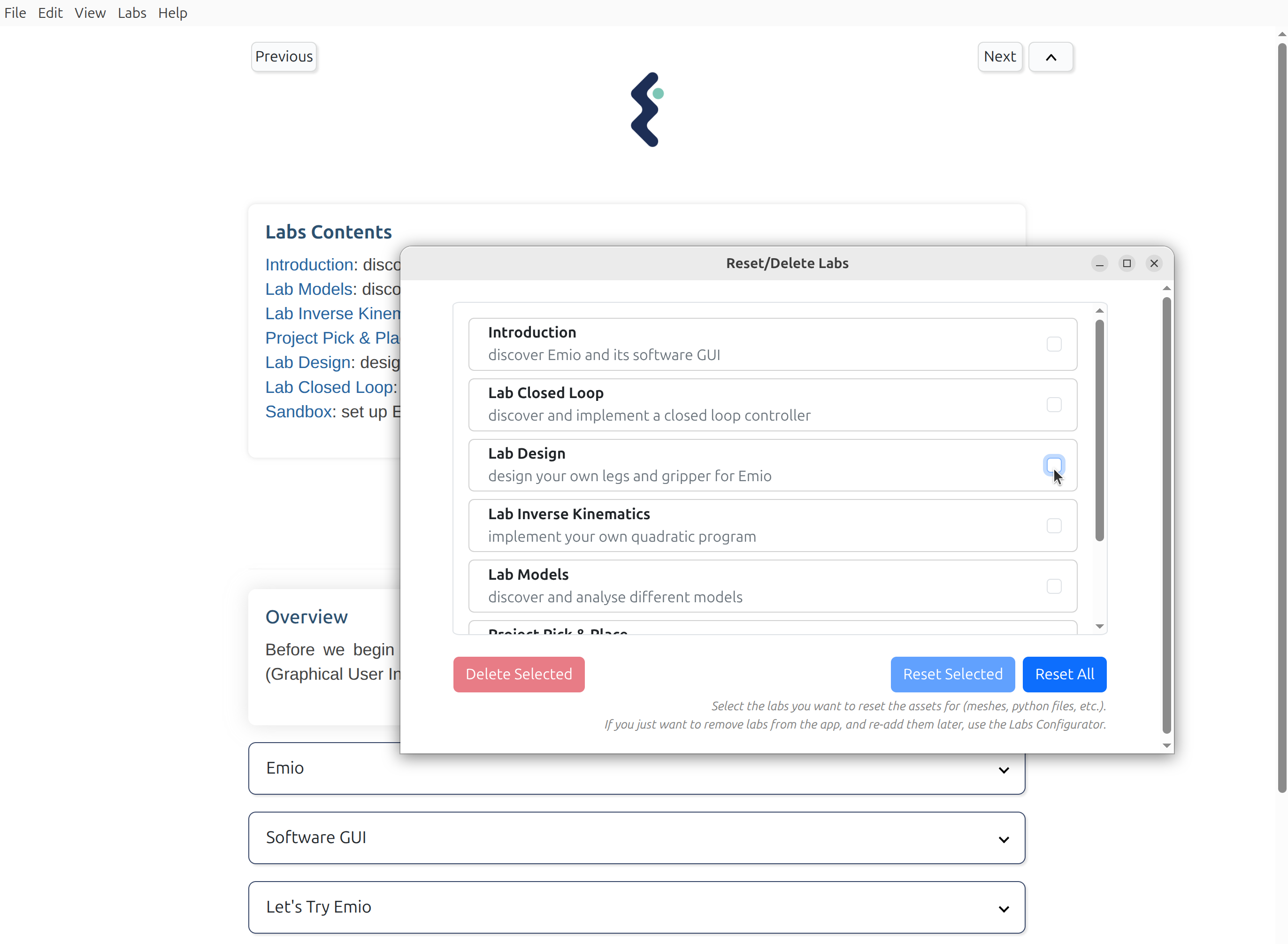 - The descriptions of each lab are now located in the